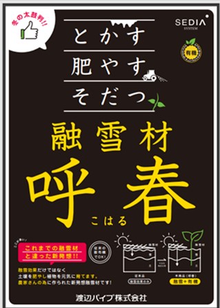 現在、この融雪剤は「呼春」という名称で農材店やホームセンターに卸しています。見かけられた際にはぜひお買い求めくださいませ。