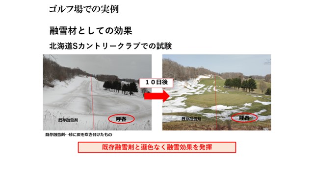 降雪地帯で畑地やゴルフ場などに融雪剤として散布すると、雪を溶かすと同時に肥料としても効く、一石二鳥の資材となっています。