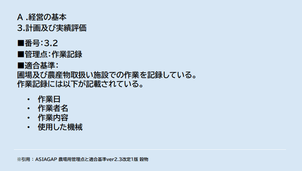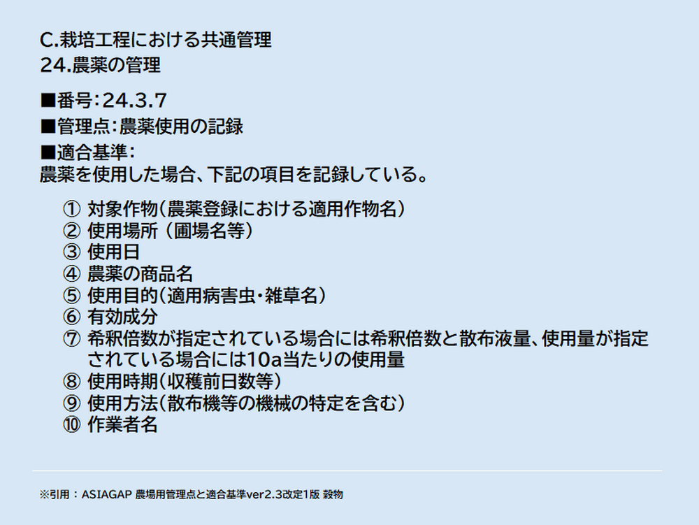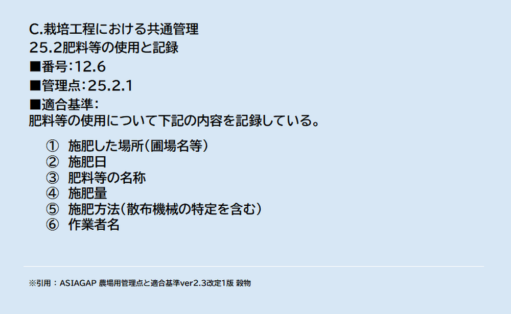 引用:ASIAGAP_農場用管理点と適合基準ver2.3改定1版_穀物