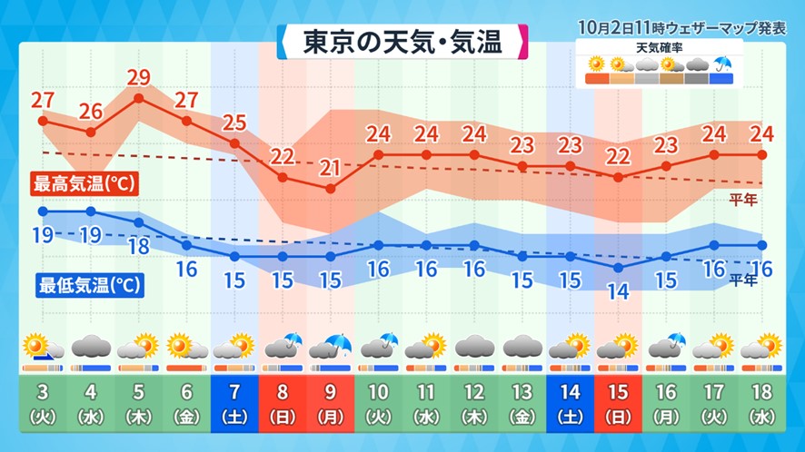 今回キーワードとなるのはやはり「気温」、そして「台風」です。