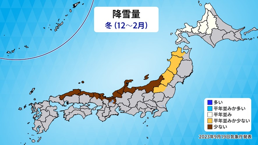 気象庁は9月19日に、この冬の天候(12〜2月)の見通しを発表しました。