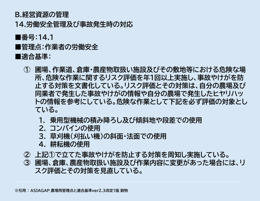 引用:ASIAGAP_農場用管理点と適合基準ver2.3改定1版_穀物