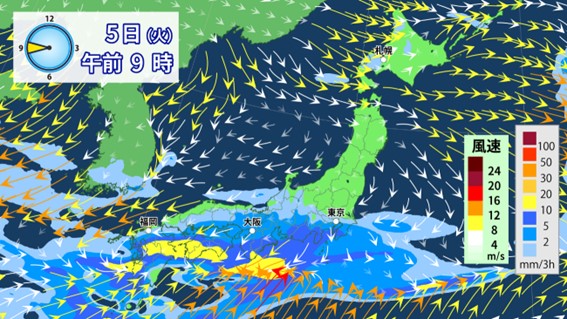 また風も強く吹いて沿岸部などでは横殴りの雨となり、波も高くなるおそれがあります。