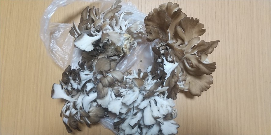 収穫したまいたけ4株を頂きました。どれも大きく、味もしっかりしていて、とてもおいしく頂きました。ただ、東さんのお話の最後に、実は種菌を売っている会社が最近高齢のため廃業したとの事で、今後の経営が難しいかもしれないと話してくれました。