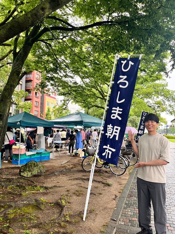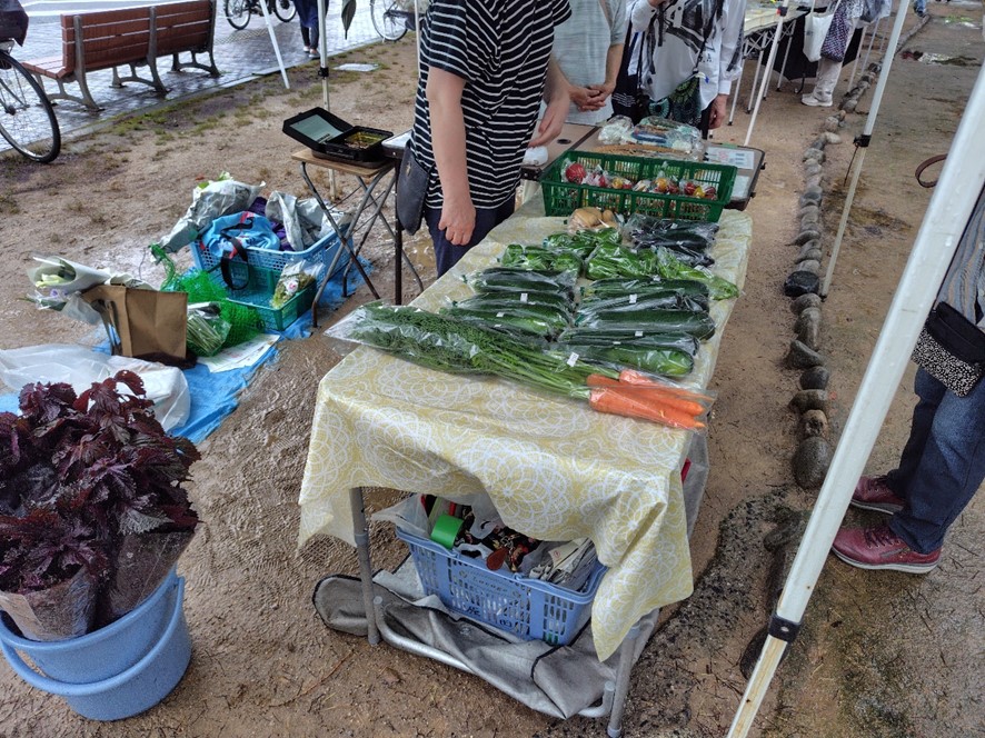 私は先月末に、ひろしま平和大通りで行われている「ひろしま朝市」にいきました。広島市内の農家や漁業者による新鮮な野菜や果物、花、お魚、そのほか様々な加工品が販売されています。この日は大雨でしたが、農家さん自慢の新鮮な農作物が並ぶので、あっという間に売り切れてしまいます。この朝市は単発のイベントではなく、毎週日曜朝に行われているため、地産地消がしっかり根付いていました。