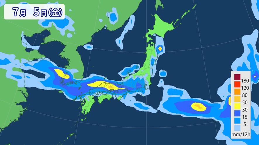 今年の梅雨の傾向としては、ずっと同じ所で降り続くというよりは、断続的に降ったり止んだりを繰り返すタイプの長雨になりそうです。日本付近は雨雲の通り道となって西から東へ、次から次へと雨雲が通っていくような状況になりそうなのです。日本海側で活発な雨雲がかかりやすい予想ではありますが、低気圧に伴う雨雲は西から東へと移動していきますので、もちろん太平洋側の地域でも雨雲がかかります。引き続き各地で大雨に気をつけなければなりません。