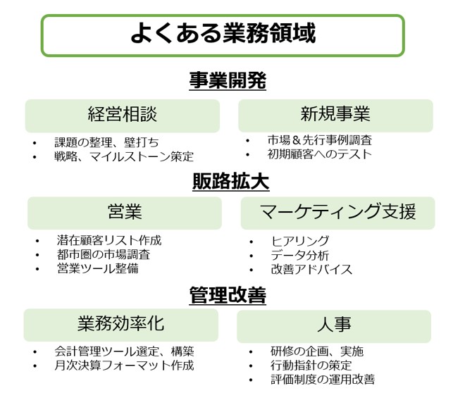 当社の大人のインターンシップでよくある業務領域は、以下の3つです。(図1参照)