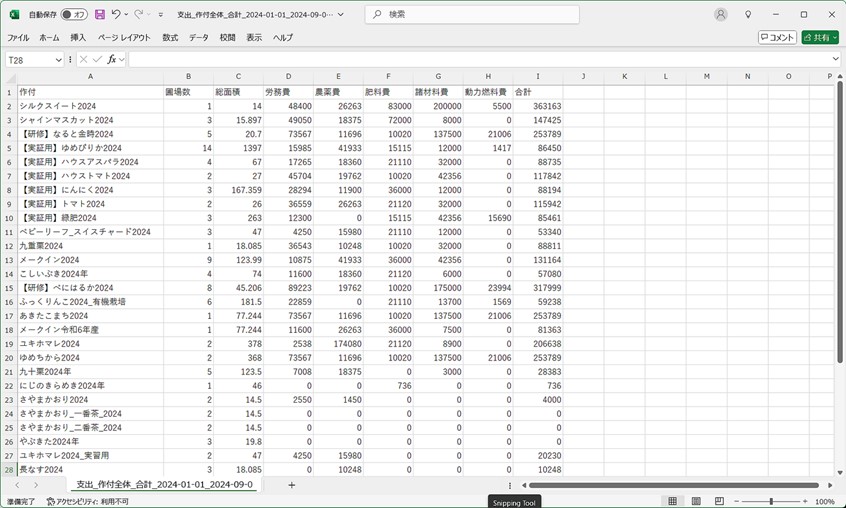 上図は作付別の支出(コスト)合計を出力した場合のイメージです。出力したデータをもとに提出資料や帳簿をまとめるなど、さまざまな形で活用できます。