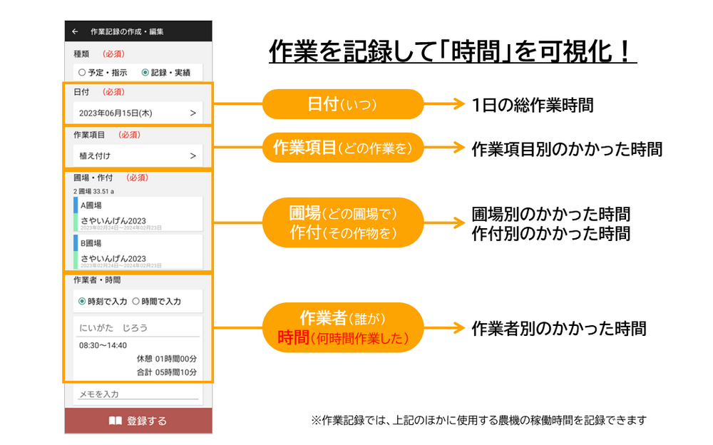 Point① 作業記録をつけるだけでコストを自動計算