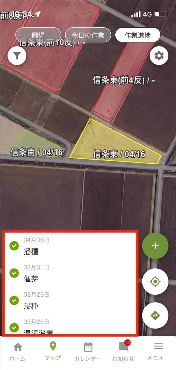 なお、アグリノートで作業進捗機能をご利用いただくには、あらかじめ農場で管理している「圃場」の設定と栽培する作物や品種を登録する「作付」の設定をした上で、日々の作業記録を作成する必要があります。各項目の設定・記録の作成方法は以下の記事をご覧ください。