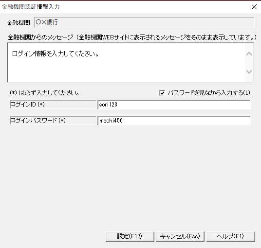 (4)金融機関の認証情報を入力する