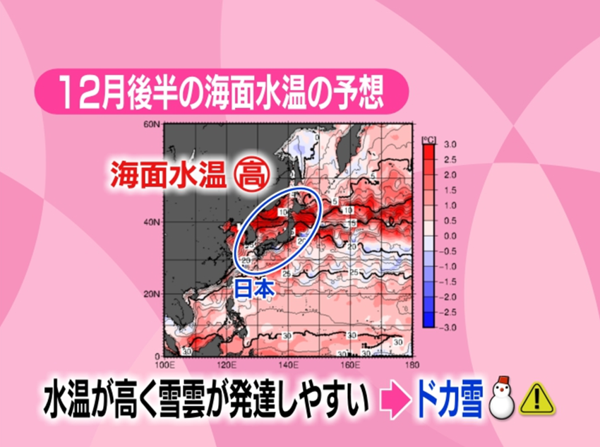 さて、今月中旬〜年末頃には雪の降り方もパワーアップしていきそうです。一体なぜそんな事が予想できるのでしょうか?