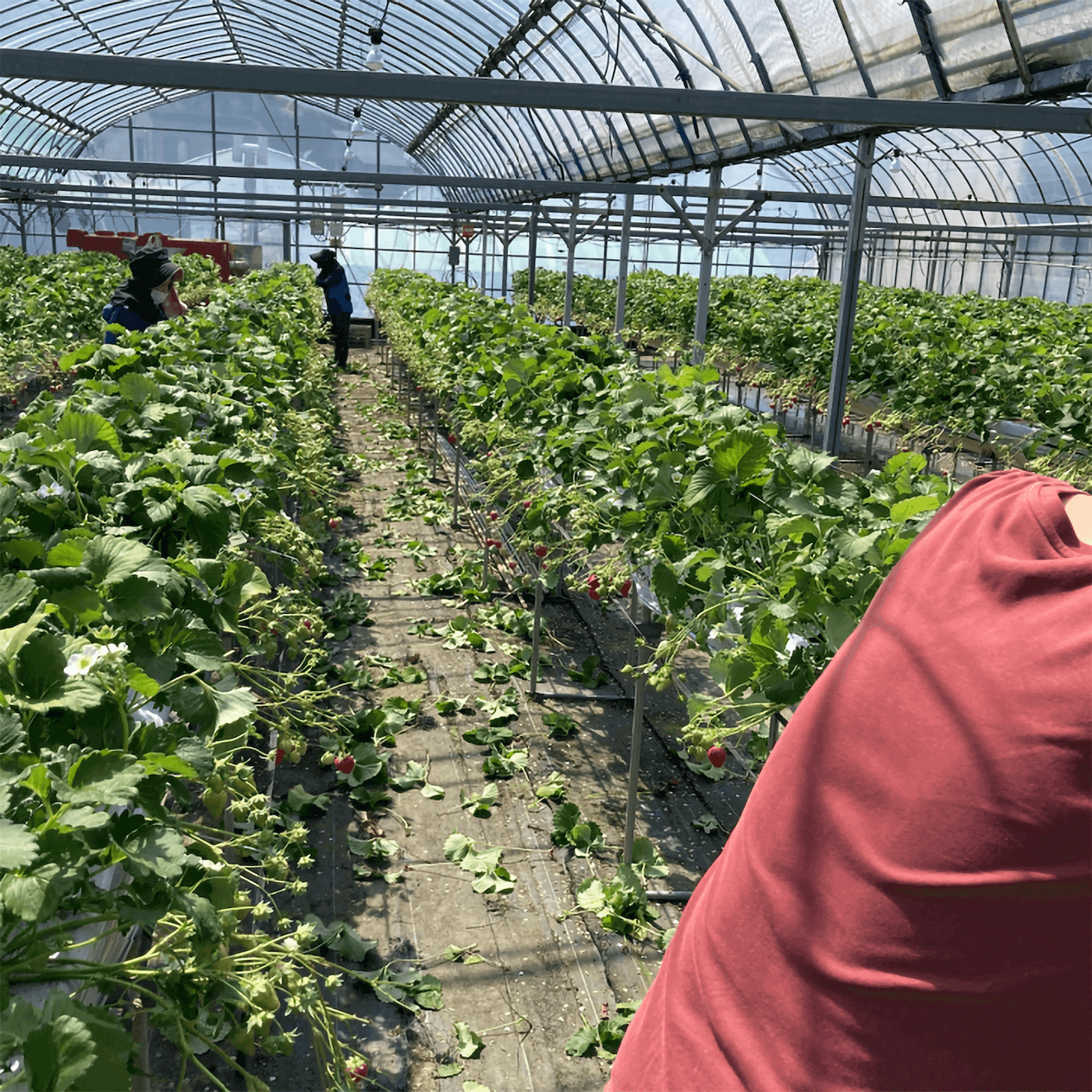 これらの作業についても、当初はパワードスーツ(人間が着用して力仕事をサポートする装置)で力仕事を補助する案や、AIやARグラス(メガネ型のディスプレイに情報を表示するデバイス)を活用してイチゴの古くなった葉や傷んだ葉を視覚的に作業者に提示する案などがありましたが、最終的にはAct.のメンバーが抱える課題(経験や勘を必要とする作業があまり請け負えていないこと)や、システム導入の難易度、徳島における仕事の量などを総合的に勘案して決定しました。