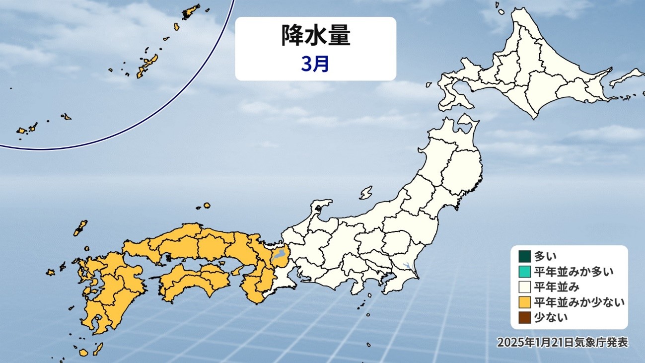 以上の事から、この先は日本に流れ込む上空の寒気の影響がだんだん弱まっていきそうなのです。今年の春は全国的に晴れる日が多く、雨が少なくいつもより暖かい日が多くなりそうです。