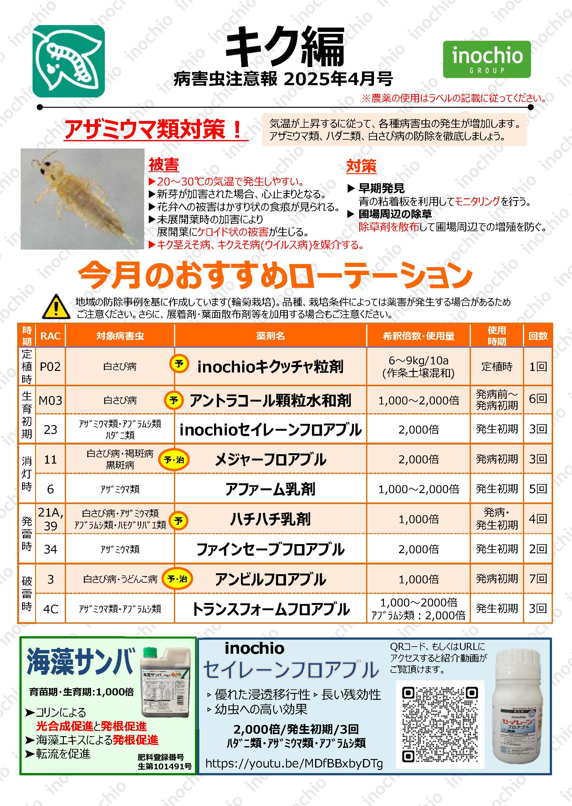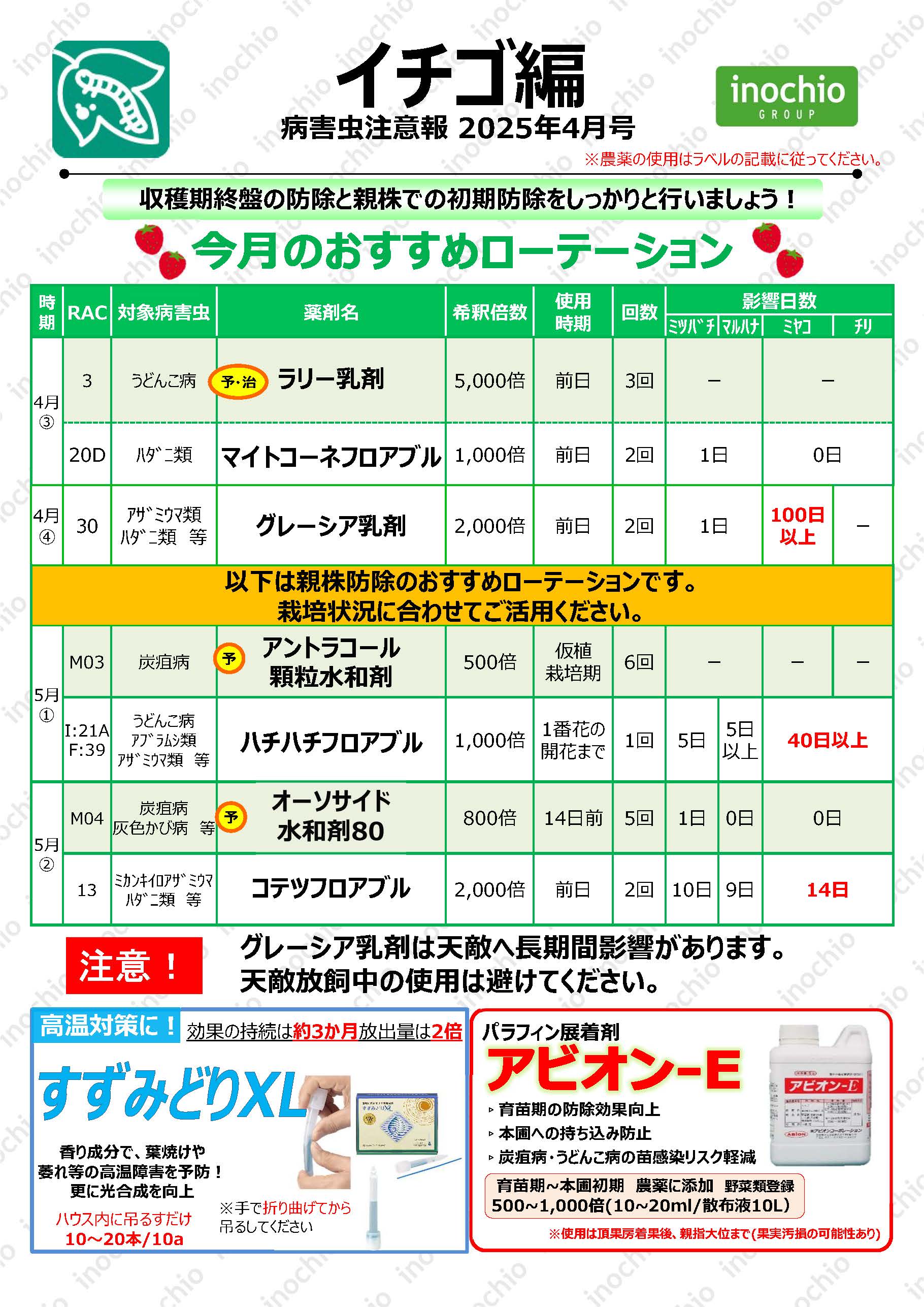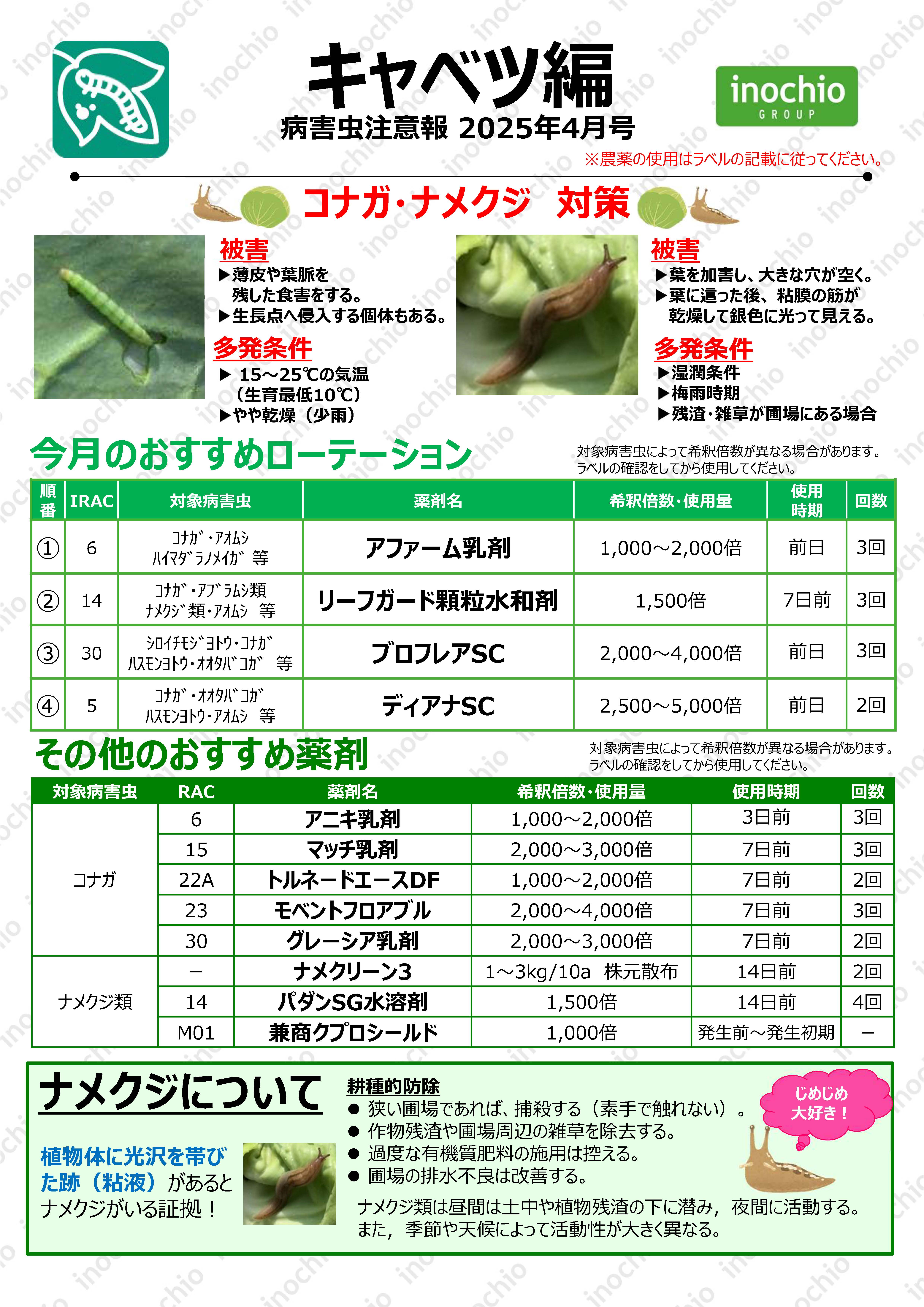 イノチオグループでは、2000年頃より農作物の防除に関するお役立ち情報を皆さんにお伝えするために『防除チラシ』の作成を行っています。
