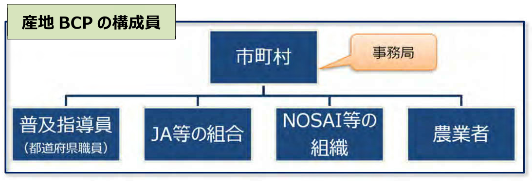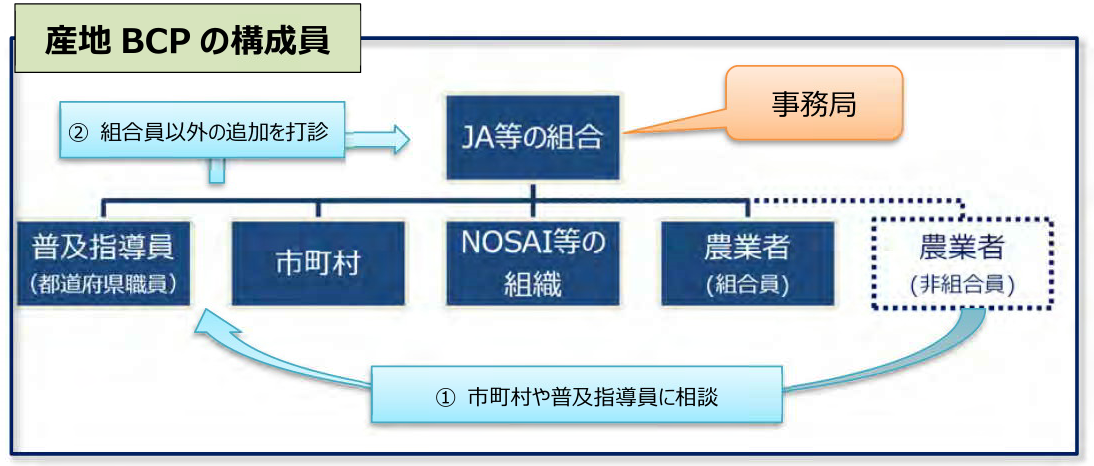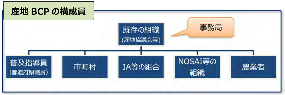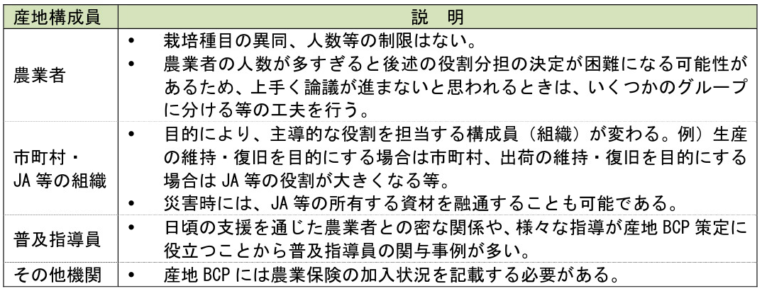 - 産地BCPは構成員を決定し、その構成員から事務局を選定する。
