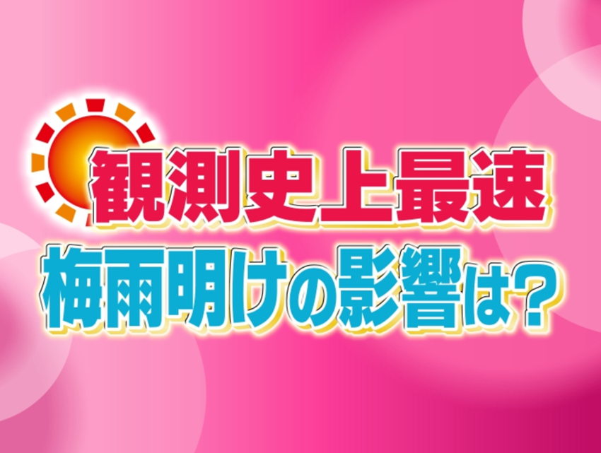 6月27日西日本では一斉に梅雨明けが発表されました。九州北部、中国、四国、近畿は統計開始以来最も早い梅雨明けとなり、さらに九州北部・中国・四国は過去最も短い梅雨日数となりました。