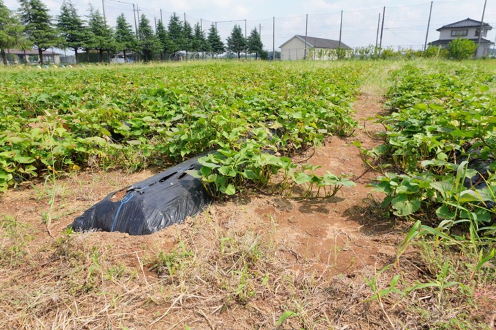 (廃校のグラウンドにて栽培されているサツマイモ)