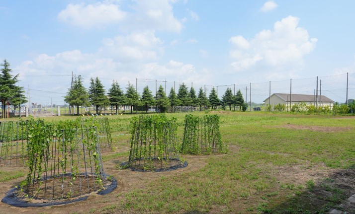 (グラウンドには収穫用の作物以外にも、栃木県が開発した品種“ゆめみどり(ニラ)”の種取り栽培も行っている)