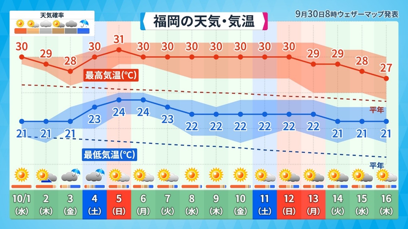 弊社ウェザーマップ独自で発表している16日予想を見てみましょう。今回は福岡を見ていきます。