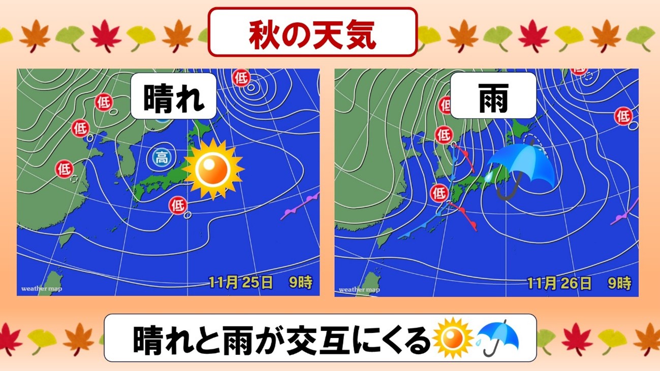 ちゃんと理由がありまして、秋雨前線の勢力が弱まり11月は移動性高気圧(晴れ)と温帯低気圧(雨)が日本に交互にやってきます。このサイクルを繰り返し、冬に向かっていきます。