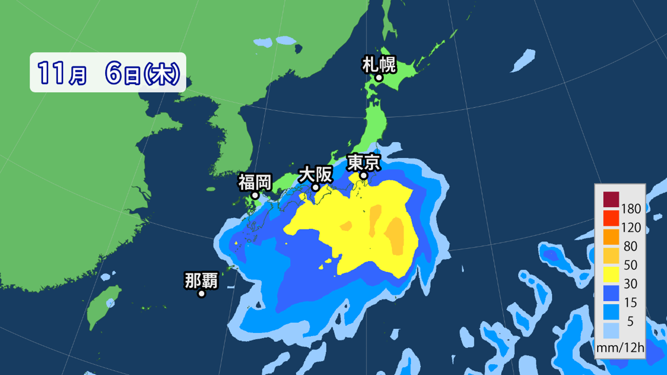 11月は本来、大雨となる日が起こりにくい季節でもあります。雨の降る日はありますが、夏と違ってこの時期は空気が乾燥していきます。大気中に大雨の素となる水蒸気が少ないため、必然的に雨量が抑えられるのです。