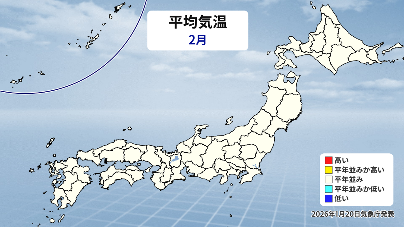 まずは先月29日気象庁発表の1か月予報(平均気温)を見てみましょう。全国的に平年並みとなっています(画面表示は白色)。