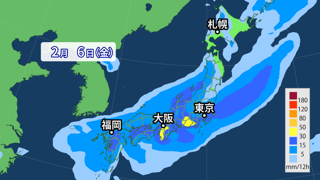 しかしながら、農家にとってまとまった雨は土を潤すまさに恵みの雨でもあります。2月に雨が降るタイミングはそうそう多くありません。この6日の雨が皆さんの地域にどれくらい降るか、ぜひ最新の予想をチェックして作業の計画や、また水の管理など計画にあてられて頂けたらなと思います。