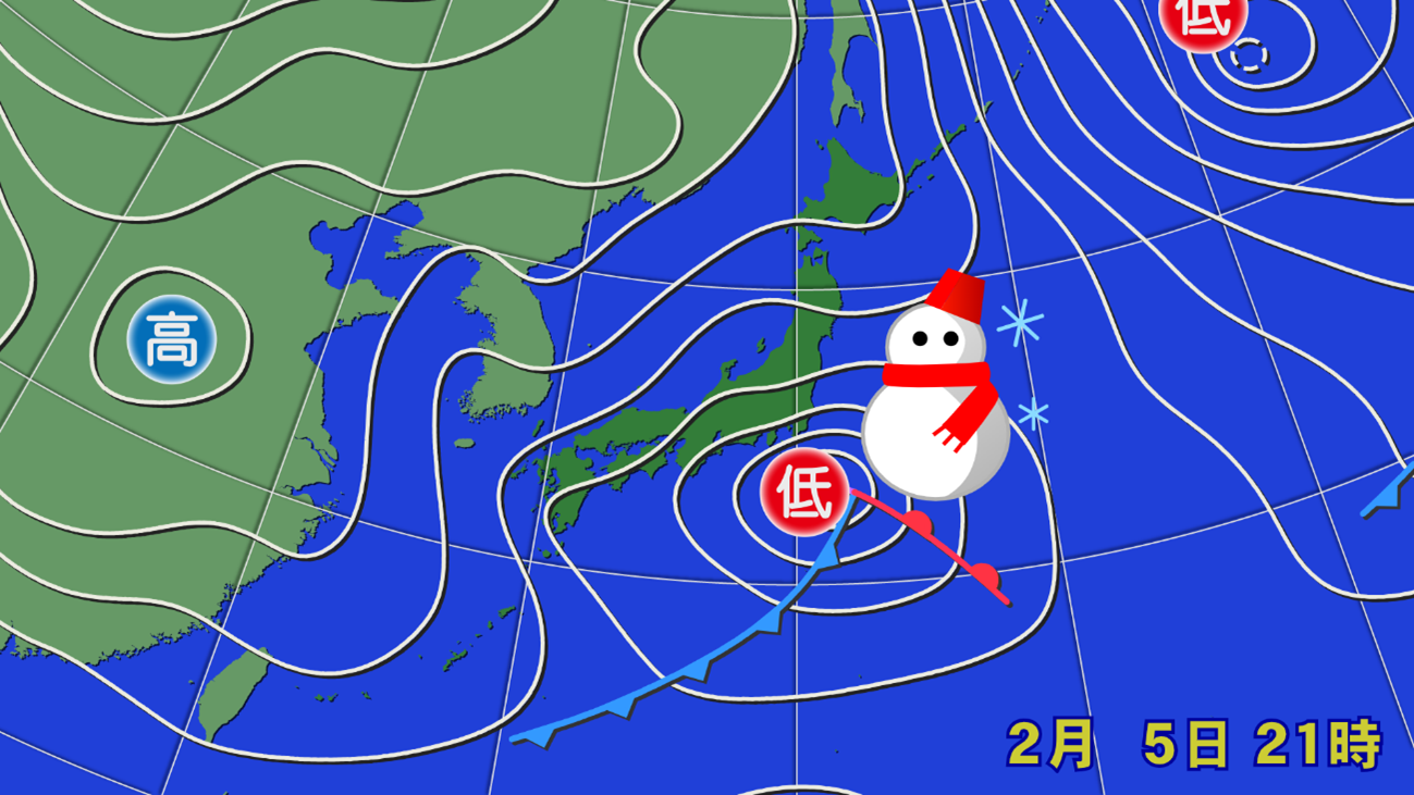 また2月は例年、南岸低気圧が来やすい時期です。南岸低気圧とは、日本の本州の南岸を沿うように進む低気圧の事で太平洋側の地域に雨や雪をもたらします。2024年2月5日、日本に南岸低気圧がやってきて、関東甲信地方中心に大雪となり、東京都心で積雪8センチを記録。大雪警報も発表されました。