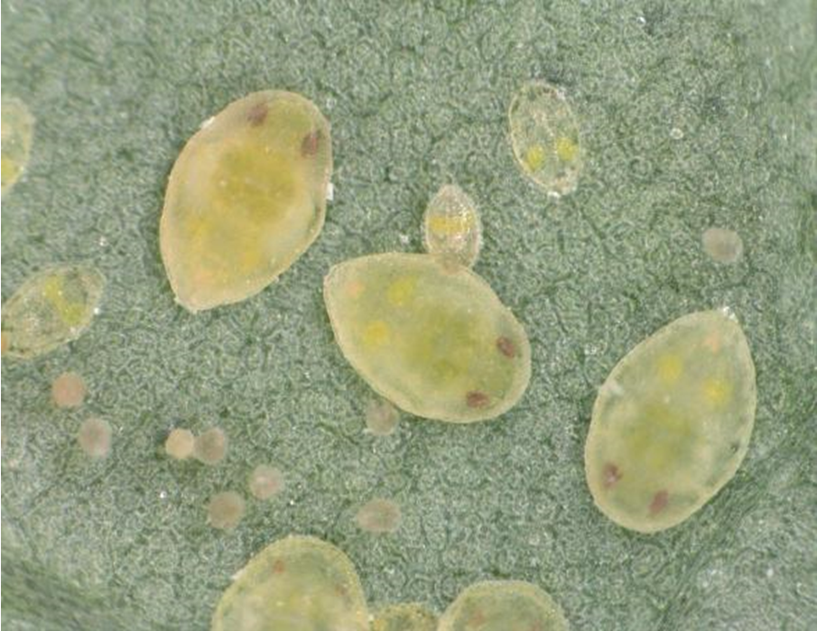 【オンシツコナジラミの成虫と幼虫および蛹】