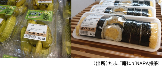 「たまご庵」が人気である理由は看板商品があるだけではない。当社は地元の生産者250名と連携し、生産者は毎日、その日に収穫した新鮮な農産物を物産館に持ち込み販売している。お客様は主力商品の卵とともに、生産者がこだわって栽培した野菜も一緒にまとめて購入することができる。また、当社は自社で栽培した国産バナナも販売している。バナナの育成にはカルシウムが必要であるが、卵の殻にはカルシウムが多く含まれており、自社の卵を活かした循環型農業を実践している。 近年では卵や農産物の生鮮素材だけではなく、惣菜事業にも力を入れている。自社の卵や地元の生産者の栽培した農産物を使用した惣菜も販売しており、当社の社員である主婦が考案した卵焼きをまるごと包んだのり巻きも人気商品となっている。主力商品だけではなく地元の生産者とも連携し、またお客様の利用シーンに合わせた商品提案もすることにより多様なニーズにも対応している。