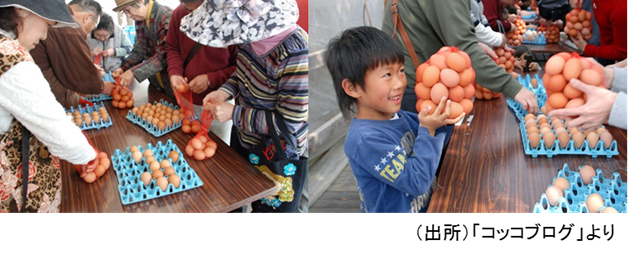 「たまご庵」では毎月20日は「卵の日」として「卵の詰め放題」イベントを開催している。網の袋にどれだけ卵を詰められるのかというイベントであり、朝から行列ができるほどの人気である。また最後は袋を結ばなければならず、「何個詰められるか」だけではなく、「あと1個詰められるか、卵が割れないか」というわくわく感・スリル感が大人から子供まで老若男女を虜にしている。また「卵の詰め放題」イベントの他にも、目玉焼きの無料試食会や規格外の卵の計り売り、季節に合わせたイベント等、定期的にイベントを開催することによりお客様が来るたびに違う刺激を味わえる仕組みを作ることにより、生産者と消費者が交流できる「地域の共生」の場となっている。