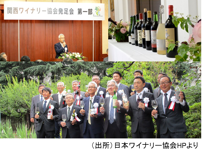 当社は100年以上かけてブランド構築をしてきた。しかし、大阪にはまだ300ha以上のデラウェア産地があるが、どの生産者も経営も苦しく後継者がいないのが実情である。そこでまず大阪府内6つのワイナリーで大阪ワイナリー協会を設立し、「大阪ワイン」ブランドの全国への発信と、協会会員のスキルアップ、ぶどう生産者のバックアップ体制の構築に取り組んだ。さらに2016年には関西地区13社が集まり関西ワイナリー協会を発足(現在14社)。関西地方に適した新品種の開発や関西ワインの認知度を上げることにより関西のワイナリーの振興を図っている。そうすることで、山梨県の甲州ワインを筆頭に東日本と切磋琢磨することで、日本ワイン全体の底上げに取組もうとしているのである。