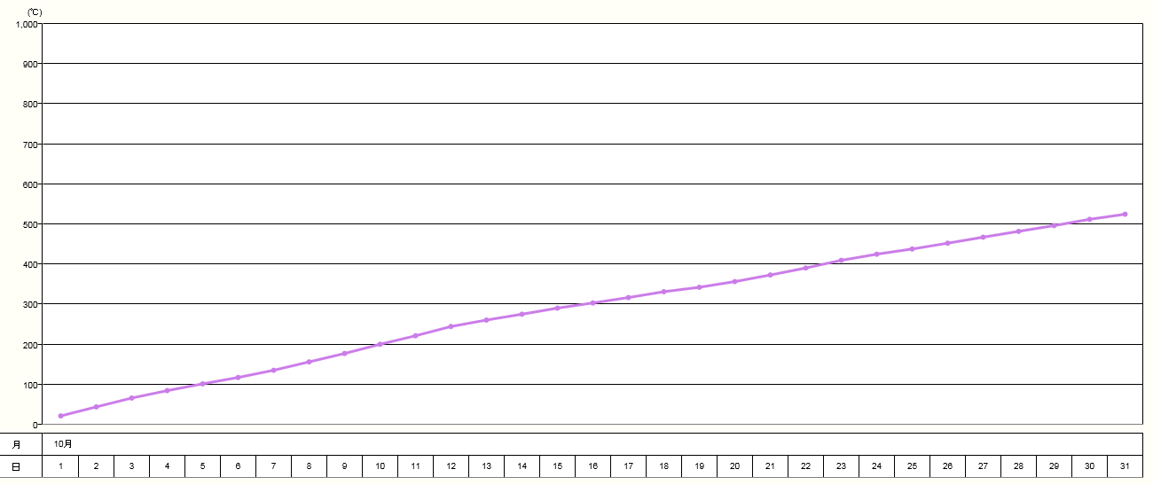 例えば、上記のように過去の天気を表示するだけでも便利に活用いただけると思うのですが、なんと積算気温の表示もできます。