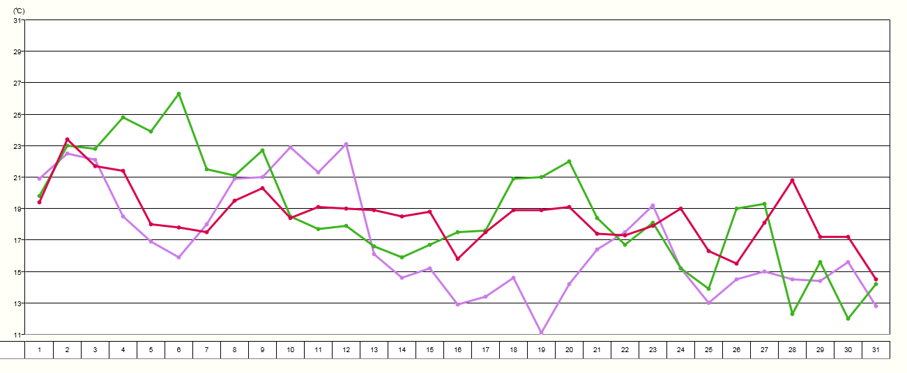 JAビル付近(2015年・2016年・2017年の10月の平均気温)