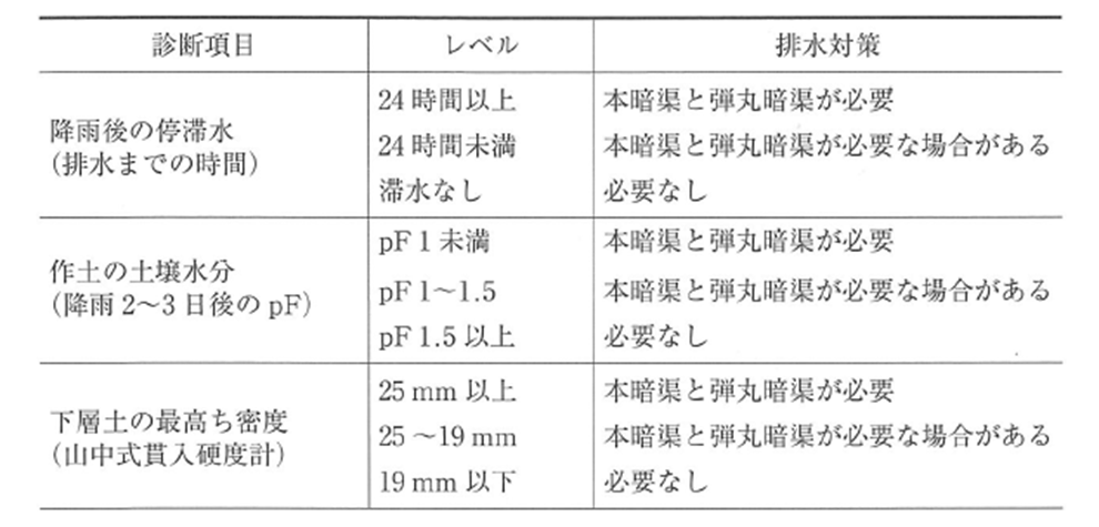 一般に、土壌硬度計(山中式硬度計)の測定値で20〜22mmになると根の伸長が抑制され、25〜27mmで伸びなくなるとされています。また耕盤ができると透水性、通気性が不良となり、湿害や干害が生じやすくなります。とくに野菜は湿害に弱いので注意が必要です。
