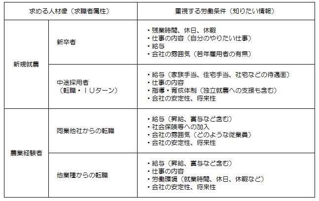 農業法人が人材を獲得していくためには、「労働時間・休憩・休日・休暇」については、一般産業界と同等の基準で労働条件を整備していくことが望ましいと考えられます。