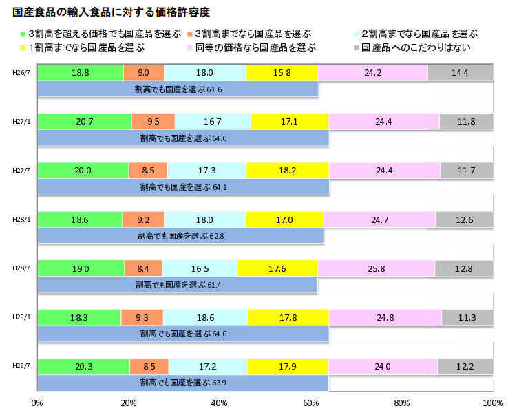 - 「輸入食品より割高でも国産品を選ぶ」は64%