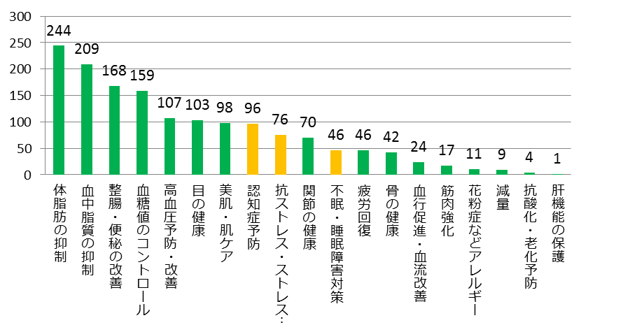 機能性表示食品のヘルスベネフィット区分(届出数:複数ベネフィットでの届出あり)
