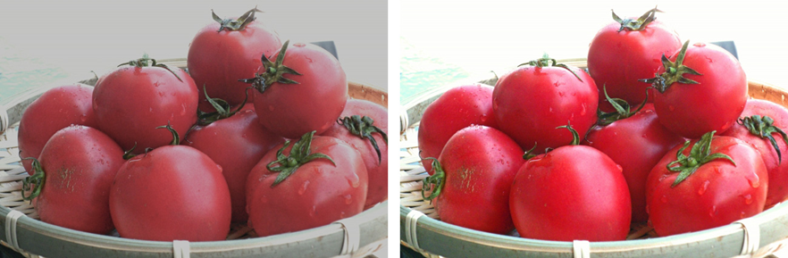 そのために最後の仕上げをします。葉物野菜は緑の彩度を上げる、明るさを上げるなどするとよいでしょう。じゃがいもであれば、あえて少し暗めにしてコントラスト上げることでより質感を強調することができます。ただし、写真の加工はあくまでも最後の仕上げです。やりすぎてしまうと素材の良さを潰してしまう可能性がありますので注意しましょう。