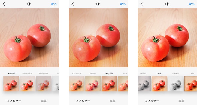 農作物の写真にオススメのフィルターは「Clarendon」「Ludwig」「Mayfair」「Lo-Fi」などがあります。これらのフィルターはコントラストを上げたり、彩度を高くしたりするようなフィルターですので、より農作物の良さを強調できると思います。