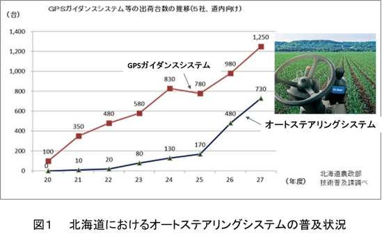 しかし、このRTK-GPSの受信機は高価です。もともと測量用に開発されたものですから高性能なものは150〜200万円します。さらに作業走行中手放し運転できるオートステアリングシステムになるとRTK-GPS、ディスプレイ、コントローラなどすべて含めて250万円程度になります。この価格では北海道のような大規模農業を実践している地域以外は、なかなか高価で導入しずらいと思います。