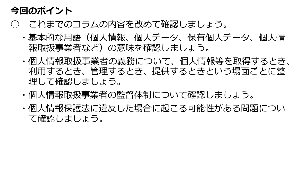 いよいよ、この「個人情報保護法の基礎知識」コラムも最終回を迎えました。