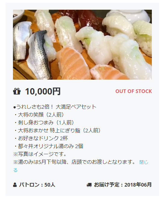 また、リターン毎に限定数(在庫数)を設定することができます。例えば限定数でお得なリターンを用意することで早期の支援を促したり、個数限定にすることで限定感を演出することもできます。
