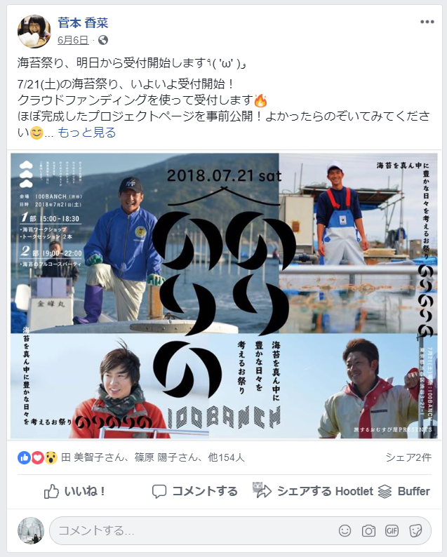情報発信を始めるタイミングは、公開の1週間以上前からがおすすめです。公開後に「始まりました!」と伝えるのではなく、公開前から「こんなことをやりたいと考えています」と広めることで、ワクワク感を伝えたり、支援者側も心やお金の準備をすることができ、いざスタートしたタイミングで勢いをつけることができます。 クラウドファンディングでは初日で目標金額の30%を集めると成功確率があがる傾向にありますので、スタートダッシュを大切にしましょう。