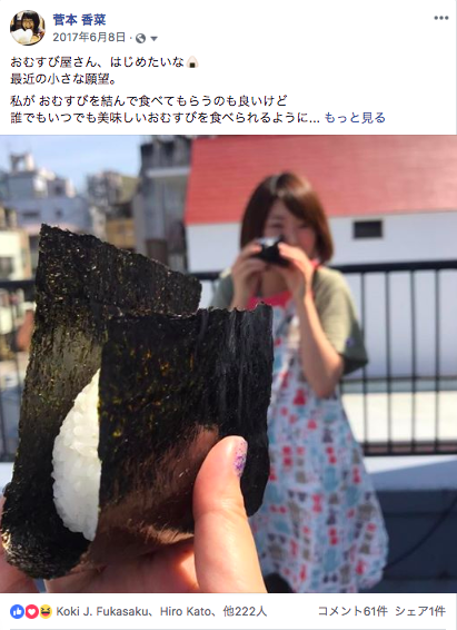おむすび屋を始めることはほぼ決まっていましたが、まだ決めきれていない時に「おむすび屋を始めたいな・・(みなさんどう思う?)」ということをfacebookにポストしました。