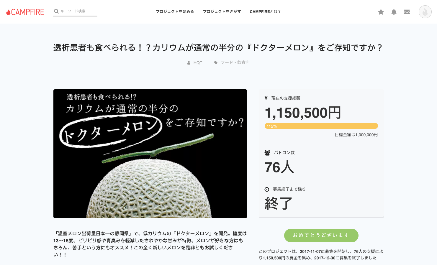 『透析患者も食べられる!?カリウムが通常の半分の『ドクターメロン』をご存知ですか?』(CAMPFIRE)