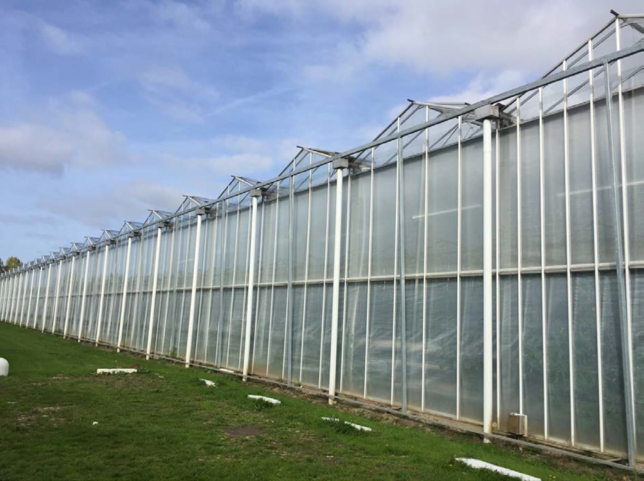 大規模と言われているオランダのハウスですが、僕の研修先の農場には2つのハウスがあり、4.0 ha と4.4 ha で総面積8.4 ha です。広さだけでなく、高さも5m 以上あり、ぱっと見てそびえ立つような感じがあります。このハウスの高さは、環境制御の精度を上げることや収量をあげるために必要です。より高さがある方が、環境制御しやすく、また植物をより高くまで生長させることができ、高収量が期待できるというメリットがあります。最低でも4メートルの高さは必要だと言われています。また、ハウスはガラスでできており、壊れた場合は安全を考慮し、落ちると砕けるようになっています。8.4 ha の広さに約13 万株のナスが植えられており、収穫量は年間で1㎡あたり50~80 kg です。 (1 ㎡は1.5 株に相当する)ナスは3 本支立で、病気の耐性を考慮してトマトと接木してあります。ナスは病気に弱いため、もし接木をしなかったら、収穫量は30 kg/ ㎡ぐらいに落ちるだろうと言われています。自分で作業をするのではなく、業者からすでに接木されたものを仕入れてきます。