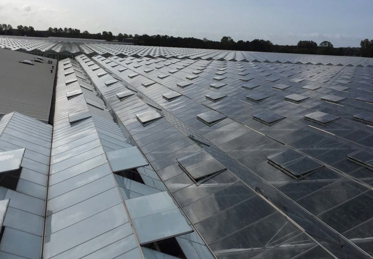 ハウス内の環境は、温度をはじめ、二酸化炭素濃度、水、湿度などの環境は全てコンピュータ管理されていて、ある程度コントロールすることができますが、日光はその日の天気によって影響するので、これをいかに供給するかが鍵になります。そこで細かい話になるのですが、ハウスの透明度を保つことが重要になってきます。オランダのハウスはガラスでできていることは先に紹介しましたが、十分な日射量を得るために、ハウスの天井は年に数回、専門の業者よって掃除することで透明度を保ちます。もし、この作業をしなかったら10%ほど収量が落ちると言われています。また、ハウス内のガラスも同様に、収穫が終わった時期に、業者を雇って入念に掃除し、透明度を保ちます。これはオランダのどのハウスも同じようにやっています。