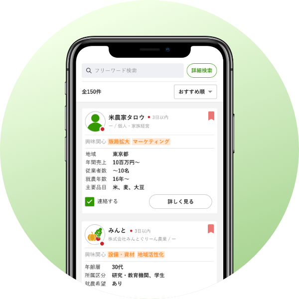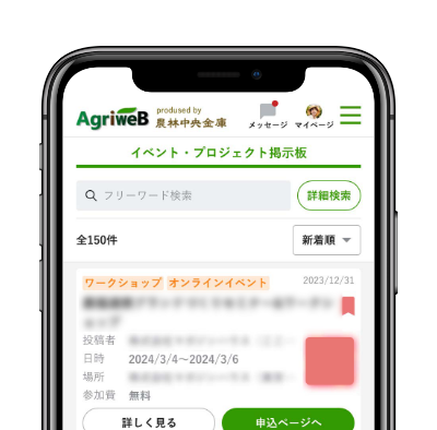 事業連携、実証モニター募集といった新たな農業ビジネスへの挑戦のなかで、意欲のある農業者等とつながりたい想いを叶える掲示板です。全てのAgriweB会員が閲覧でき、将来のパートナーシップにつながります。